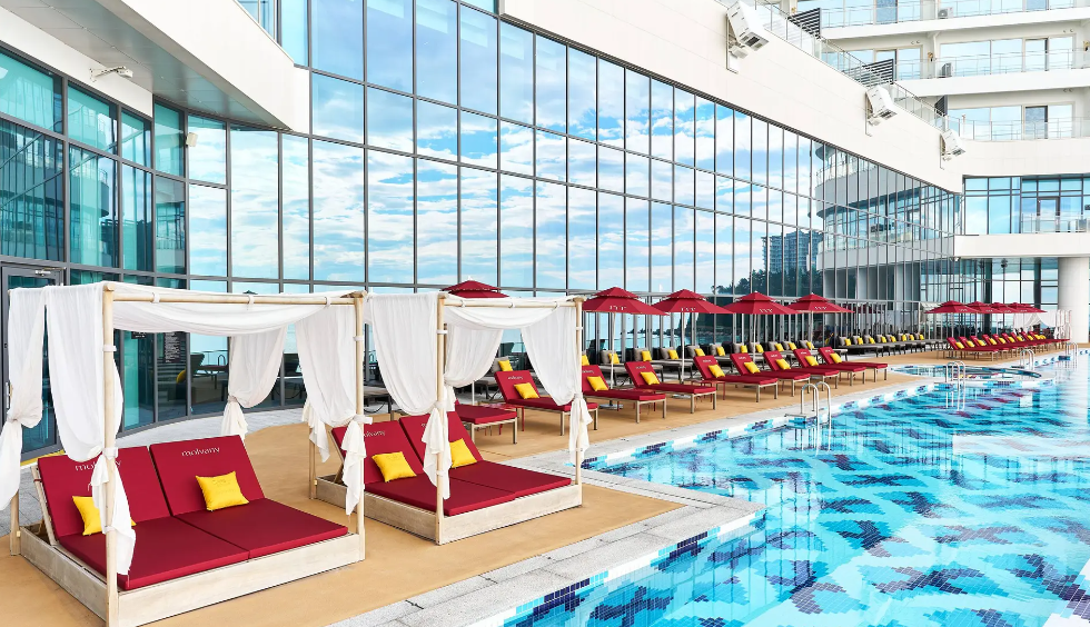 실내 수영장과 사우나 시설도 있어 계절과 날씨에 관계없이 여유를 즐길 수 있으며, 스파 센터에서는 해수를 활용한 테라피와 미네랄 솔트 트리트먼트를 제공합니다. 피트니스 센터는 최신식 장비와 요가 스튜디오를 구비해 건강 관리에도 부족함이 없습니다.
