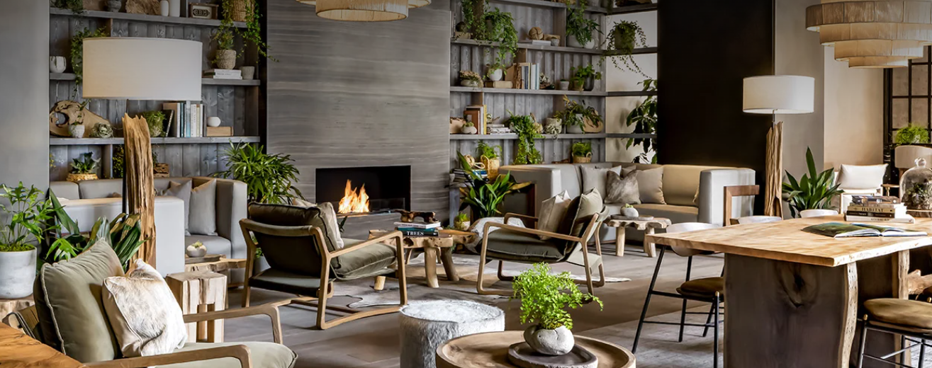 호텔 전체 인테리어는 자연 그대로의 질감을 살린 원목, 자연석, 재활용 목재, 각종 식물과 수천 개의 그린월(Vertical Garden)로 구성되어 있어, 입구에 들어서는 순간 자연과 연결된 기분을 강하게 줍니다. 2024–2025 시즌을 맞아 더 많은 식물 관리 시스템이 도입되었고, 로비·레스토랑·라운지 등 주요 공간은 ‘Urban Sanctuary(도심 속 피난처)’라는 콘셉트에 맞게 조용하면서도 깊은 휴식감을 제공합니다.